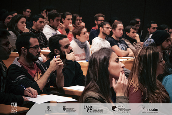 Por las mañanas, se realizaron conferencias de la mano de: Pierluigi Cattermole, director de la revista Experimenta; José Corujeira, especialista en Metodología de la Creatividad; Matías González de la ULPGC, especialista en Turismo Sostenible; Marco Vaginini, de ISIA Roma Design, de Emprendeduría Social; Carlos Viña, Juan Fco. Ojeda, Marian Alonso, David Lozano (3D Print Show London), y "La Fabrika", en Impresión 3D, y Arduino; Giocomo Vaccari, en videojuegos; José Domingo Núñez, de Arquitectura en ULPGC, en Recycling; Álvaro Hernández y Néstor Viña, en Cream-on y realidad virtual.